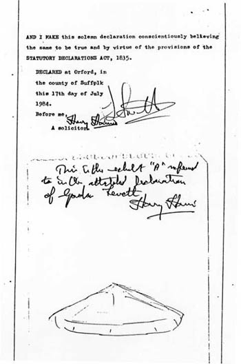Commander at Woodbridge, had insisted that the first night's events be entered in the security police log but the second night's event tore him away from his dinner. Armed with a tape recorder, Lt. Colonel Halt and a number of other servicemen witnessed the events as they unfolded - a detailed tape recording being made. A full report dated 13th January 1981 was sent to the British Ministry of Defense by Lt. Colonel Halt. The M.O.D.'s ultimate response was : "The department satisfied itself at the time that there was no reason to consider that the alleged sighting had any defense significance." |